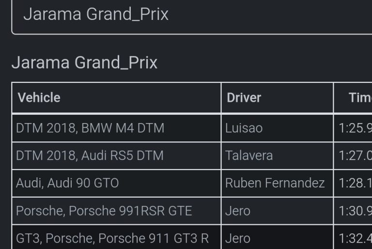 Podrás elegir casi cualquier coche de competición de la historia del motorsport, desde un Clio de la copa hasta un Formula 1, pasando por los DTM , Indycar, Nascar, prototipos de Le mans, GT3, GT4, Clásicos..